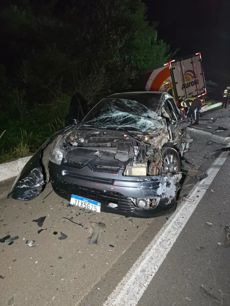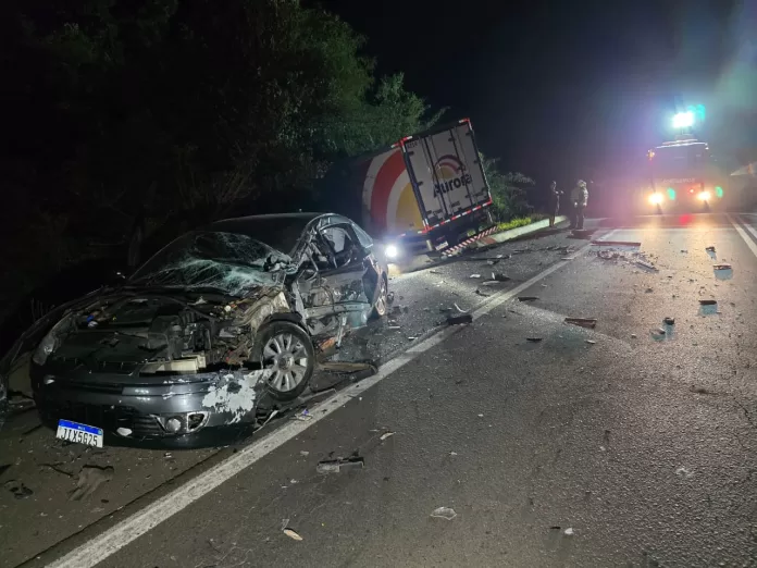 Colisão frontal entre carro e caminhão na BR-282 deixa dois feridos
