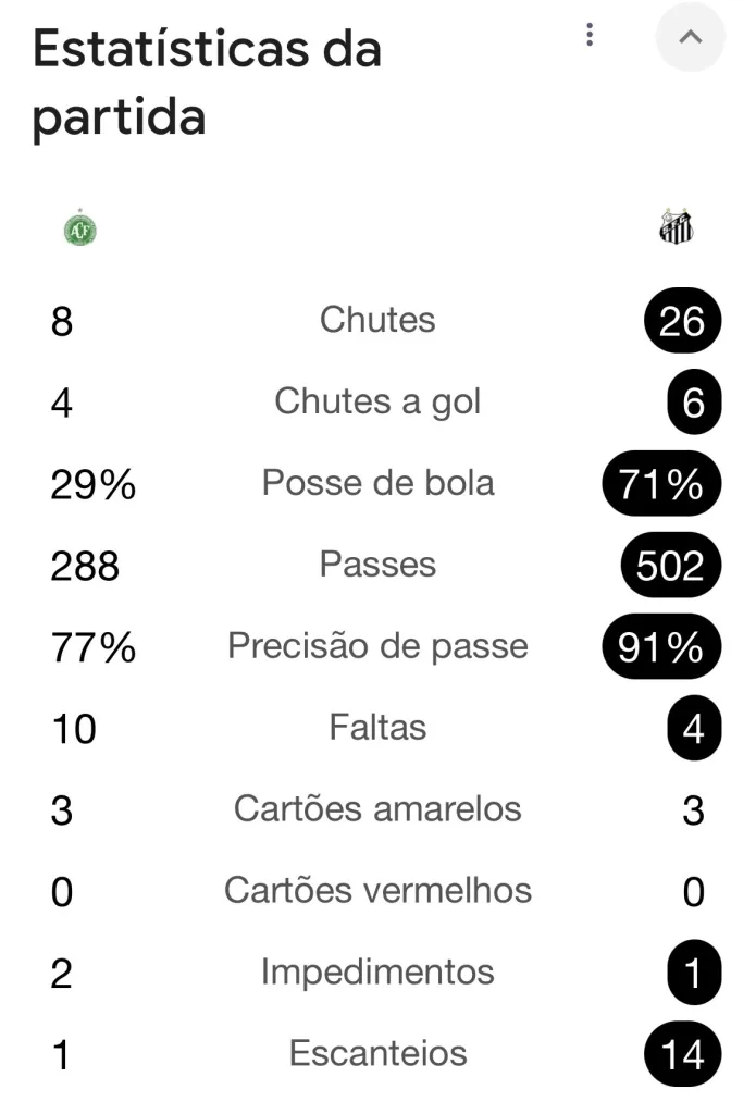 As estatísticas da partida mostram que o Santos foi superior em campo, mas o placar final na correspondeu à atuação.