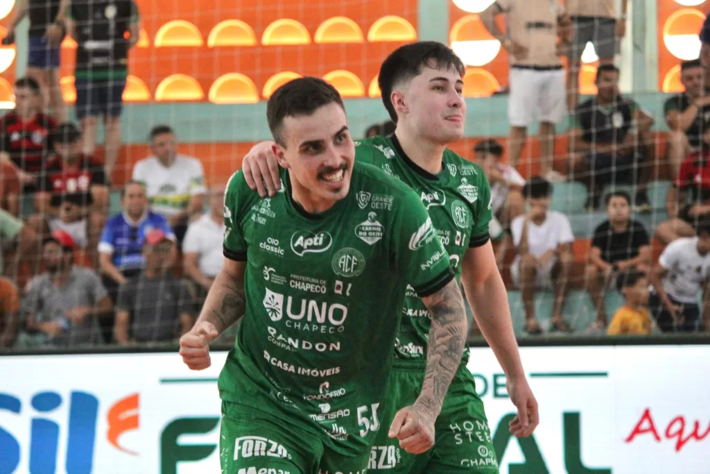 Na segunda etapa, a Chapecoense continuou marcando forte e ampliou a vantagem no fim. Após roubadas de bola, aproveitando que o adversário estava com o goleiro-linha, Vitor Nascimento, aos 19, e Luiz Garcez, aos 19’50”, decretaram o triunfo por 4 a 1.