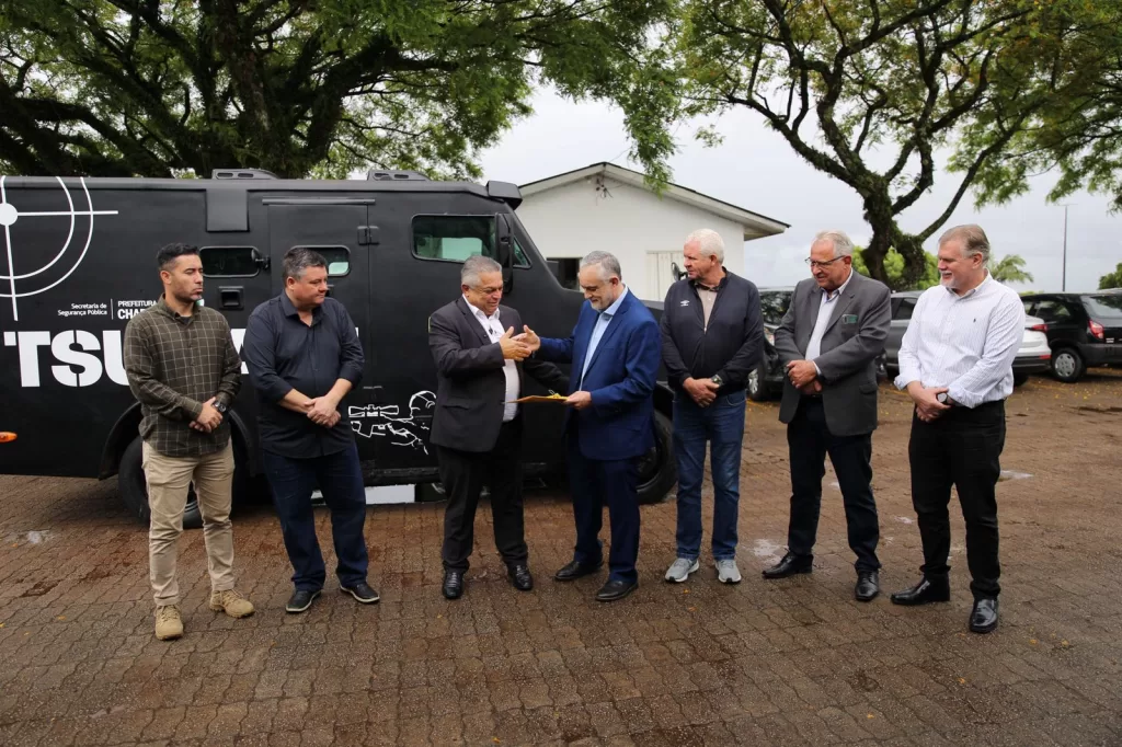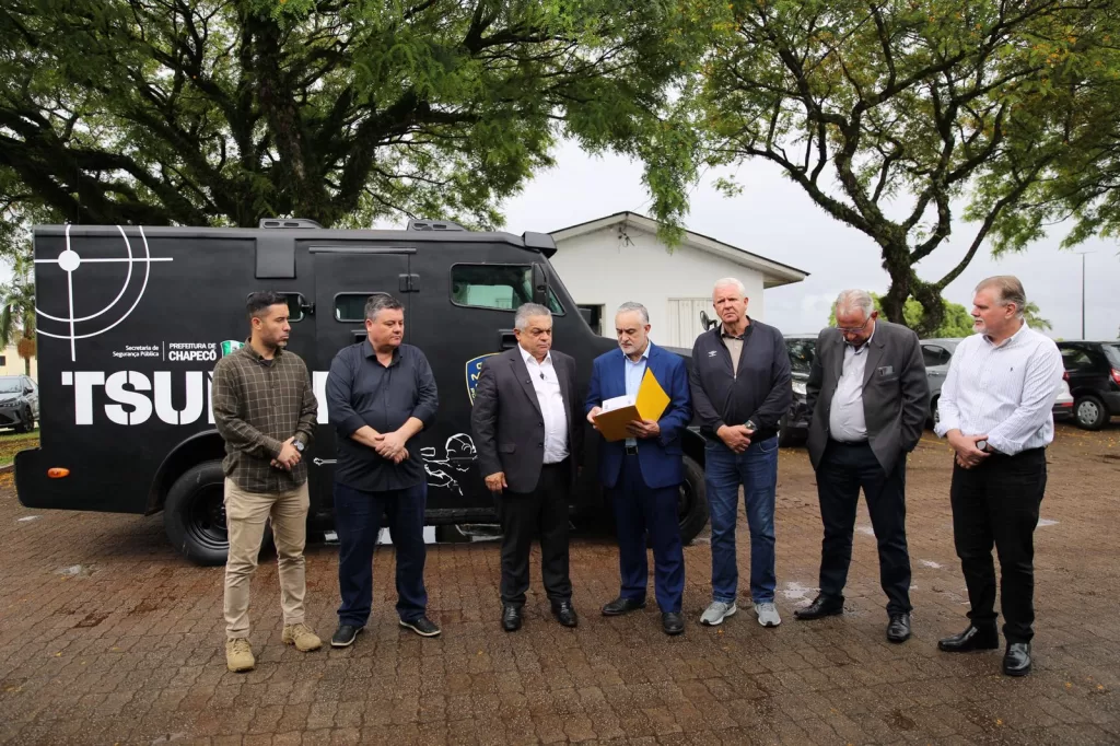 A Guarda Municipal de Chapecó reforçou sua estrutura operacional com a aquisição de um veículo blindado. O caminhão, doado pela empresa Prosegur, foi entregue na manhã desta terça-feira (9) e será utilizado em operações complexas, como controle de distúrbios e apoio ao combate ao crime. O prefeito João Rodrigues destacou que o equipamento inibe a criminalidade sem custos de aquisição para os cofres públicos.