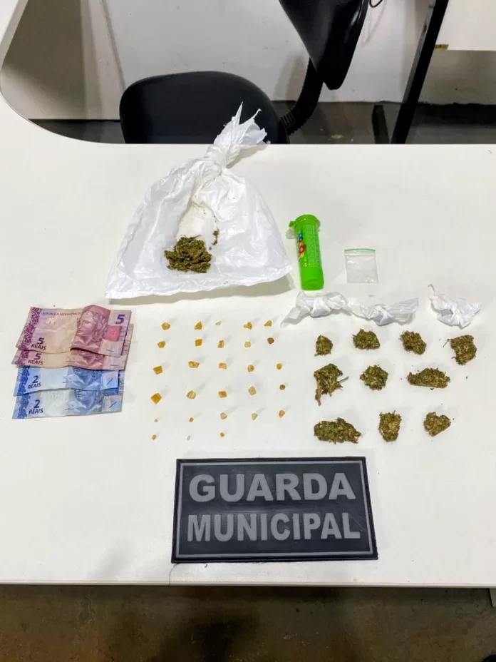 Durante a abordagem, os guardas municipais apreenderam 28 pedras de crack, 13 porções de maconha e uma pequena quantidade da substância esfarelada. Além das drogas, foi encontrado R$ 12,00 em espécie, possivelmente proveniente da venda ilegal.