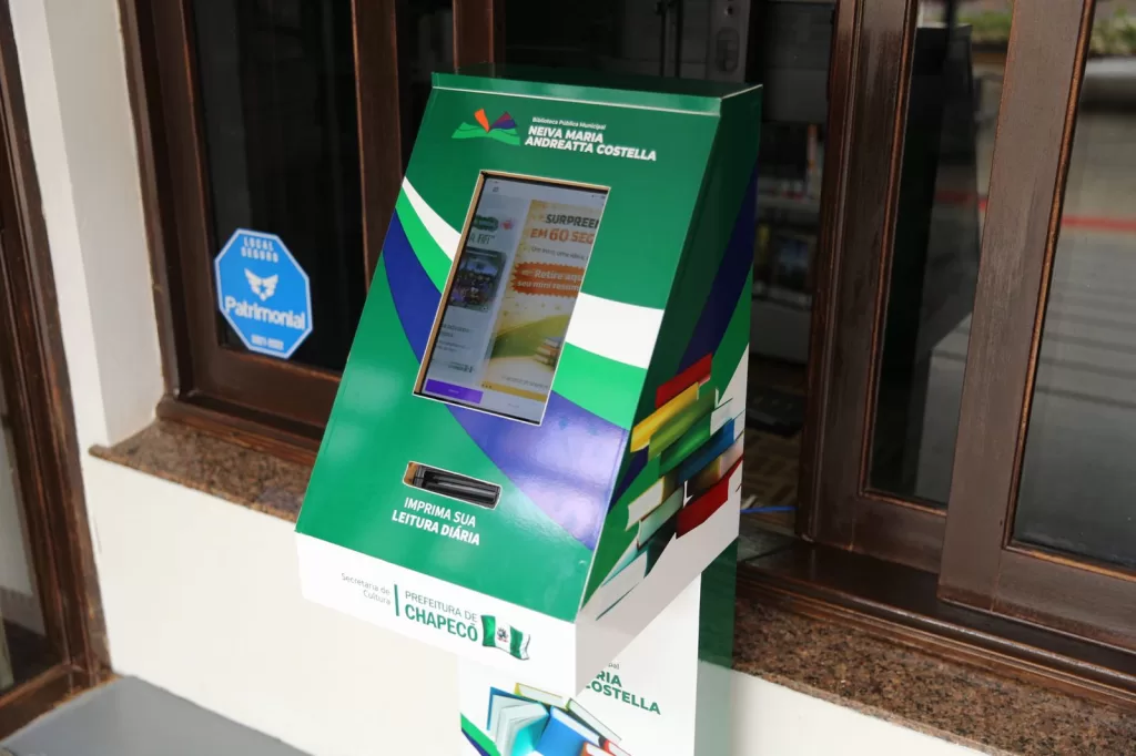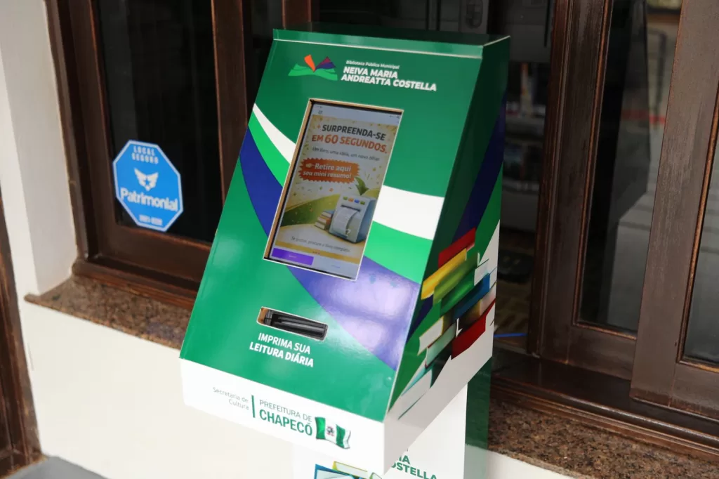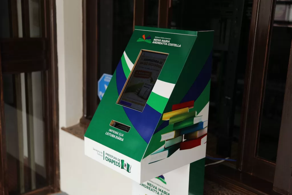 A Prefeitura de Chapecó, por meio da Secretaria de Cultura, passa a oferecer à comunidade um novo recurso de incentivo à leitura: o “Flash Reader”, um totem interativo que permite o acesso gratuito a conteúdos literários e informativos de forma rápida e acessível. O equipamento já está disponível na Biblioteca Pública Municipal e também será utilizado em outros espaços da cidade, ampliando o alcance das ações culturais.