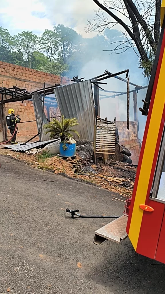 Os bombeiros conseguiram acessar o interior da residência anexa à área queimada, que foi parcialmente danificada pelo calor — parte do forro de PVC e uma porta de acesso foram afetados.