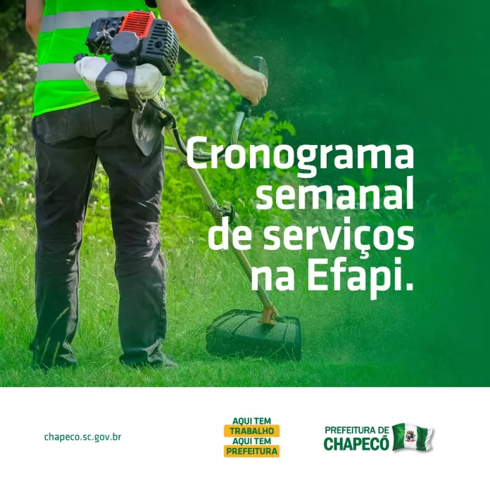 A Superintendência da Efapi, informa o cronograma de atividades previstas para a semana do dia 15 a 19 de dezembro. Informamos que o cronograma poderá sofrer alterações devido às condições climáticas e/ou situações emergenciais.