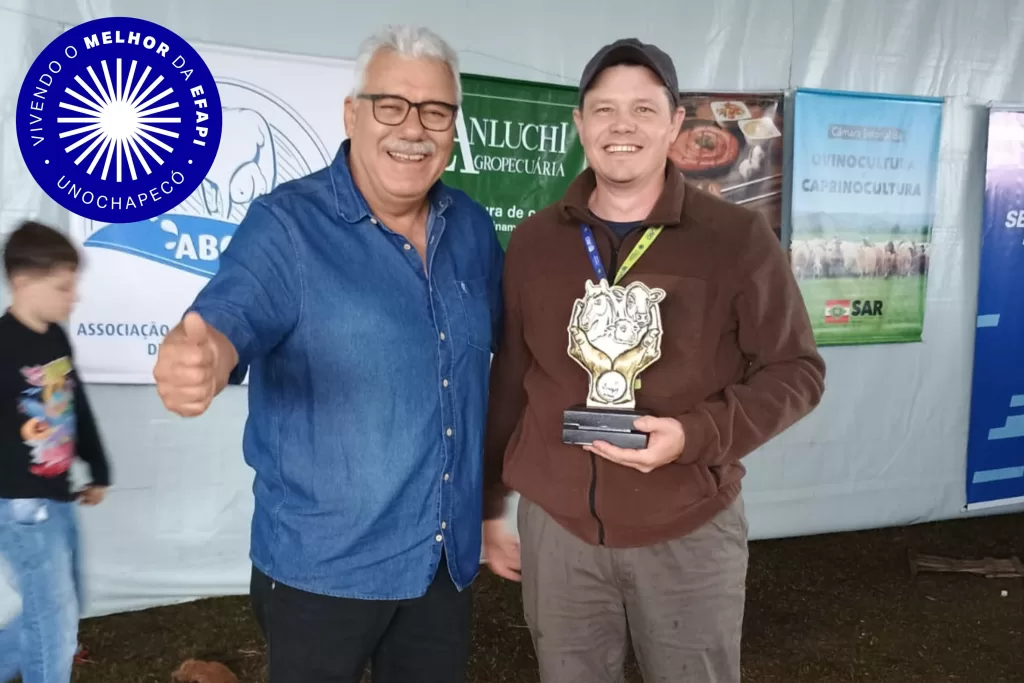 O curso de Medicina Veterinária da Uno recebeu um troféu da Secretaria de Agricultura de Chapecó em reconhecimento à atuação com os animais durante a Efapi. A premiação foi entregue pelo secretário de Desenvolvimento Rural, Mauro Zandavalli. O coordenador do curso, professor Mauro Polenz, ressaltou o orgulho da Uno em contribuir para o bem-estar dos animais e para o desenvolvimento do Oeste catarinense.