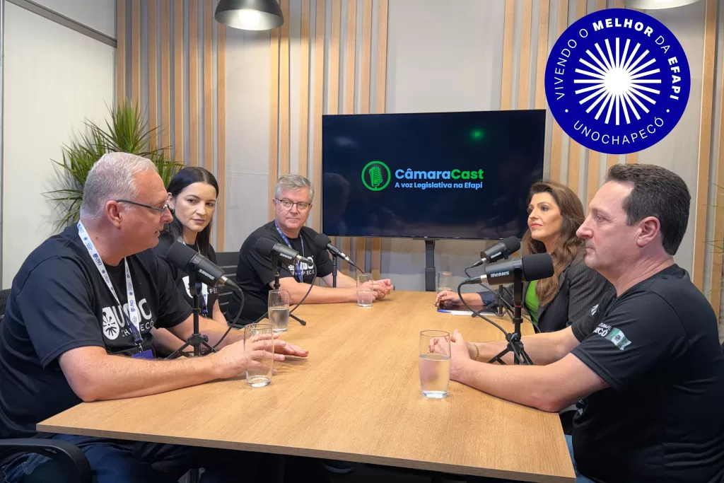 No fim da tarde, gestores da Uno participaram do Câmara Cast, podcast da Câmara de Vereadores transmitido diretamente do estande. Participaram o reitor Claudio Jacoski, o vice-reitor e pró-reitor de Infraestrutura e Gestão José Alexandre De Toni, a pró-reitora de Ensino, Pesquisa e Extensão Andréa Marocco, e o presidente da Câmara Claimar de Conto.