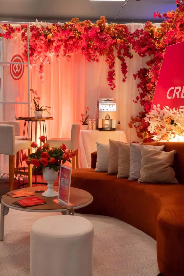 Com uma identidade visual marcada pelos tons de rosa e laranja, o ambiente da Cresol foi planejado para proporcionar uma experiência de acolhimento. Cada detalhe do espaço foi pensado para criar um ambiente confortável e propício ao diálogo, destacando-se pela proposta de recepção atenciosa aos visitantes.