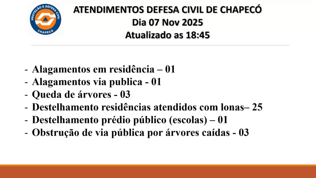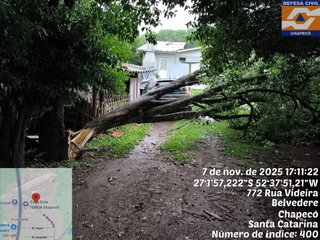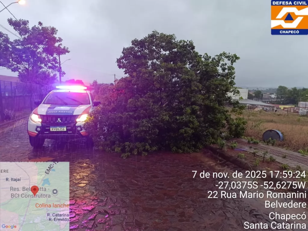 CHAPECÓ — As equipes da Prefeitura de Chapecó e da Defesa Civil Municipal estão mobilizadas para atender as ocorrências registradas após as fortes chuvas que atingiram o município no final da tarde desta sexta-feira (7).