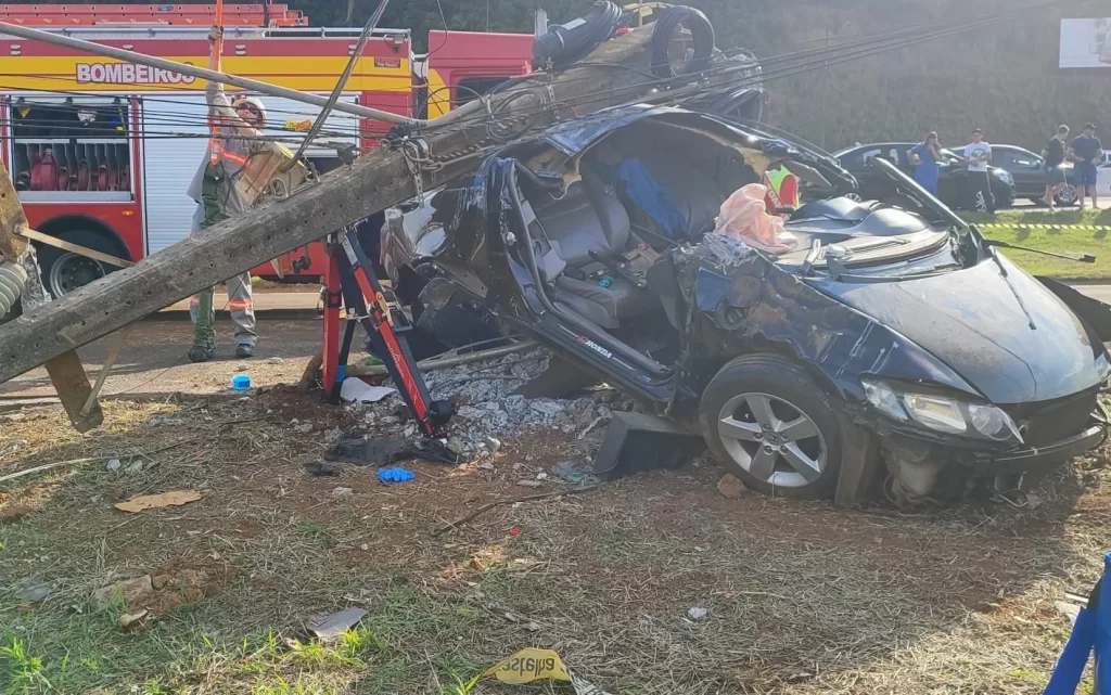 No local, as equipes constataram que um veículo de passeio saiu da pista e colidiu contra um poste de concreto. O impacto foi forte o suficiente para derrubar o poste, deixando a fiação sobre o automóvel.