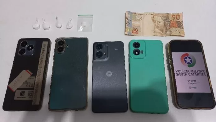 Em alguns dos celulares, os policiais visualizaram notificações com indícios de comercialização de drogas, incluindo mensagens solicitando entregas, registros de negociações e comprovantes de transferências via PIX.