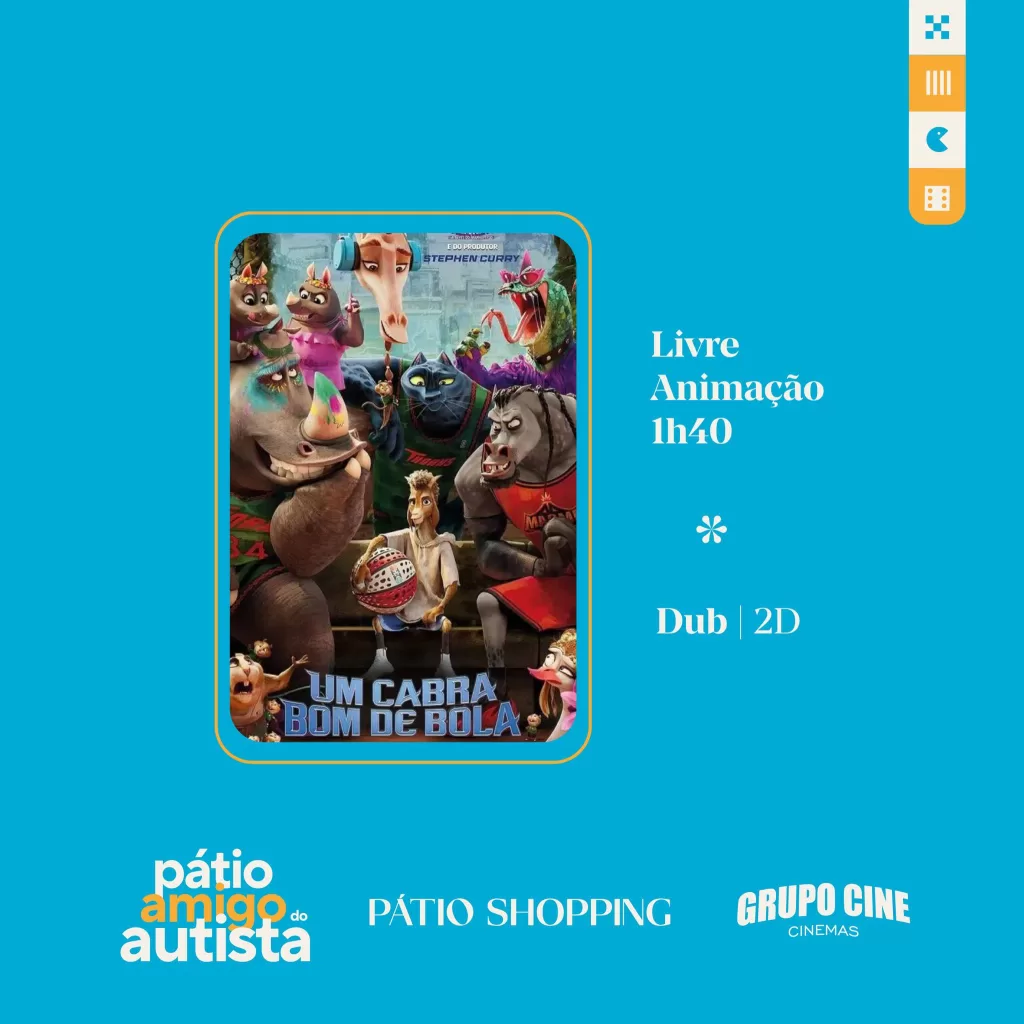 O Grupo Cine no Pátio Shopping exibe neste sábado, 21 de fevereiro, às 11h, mais um filme na Sessão Azul, promovida especialmente para pessoas com Transtorno do Espectro Autista (TEA) e Síndrome de Down (T-21) de todas as idades. A iniciativa adapta a sala de cinema para proporcionar conforto e inclusão, com ajustes no som e na iluminação.
