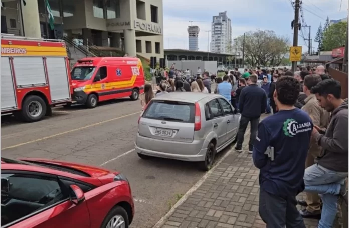 Pontualmente às 14h, o alarme foi acionado. Em cinco minutos e 26 segundos, o edifício estava completamente evacuado. Pouco depois, em seis minutos e 25 segundos, o Corpo de Bombeiros de Chapecó chegou ao local com caminhão de operações e ambulância.