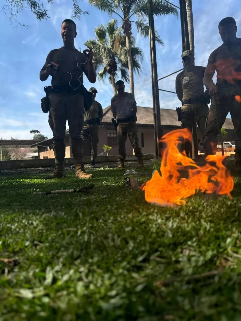 Também foi ministrada a disciplina de Uso Diferenciado da Força (UDF), com atividades que simularam situações de estresse, contato com gás lacrimogêneo (CS) e instruções com granadas, espargidores, espingarda calibre 12GA e pistola elétrica incapacitante.