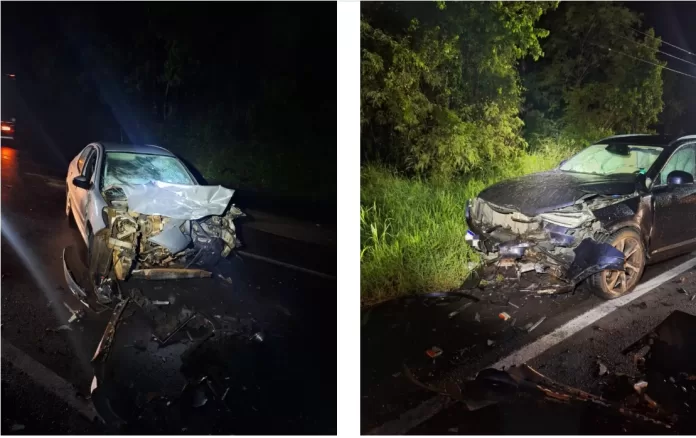 Os militares do Posto 25 de Chapecó atenderam a ocorrência por volta das 21h. No local, encontraram um Peugeot 207 e um Volvo XC90 bastante avariados. As primeiras investigações apontam que o Peugeot, que seguia para Quilombo, invadiu a pista contrária e atingiu o Volvo de frente.