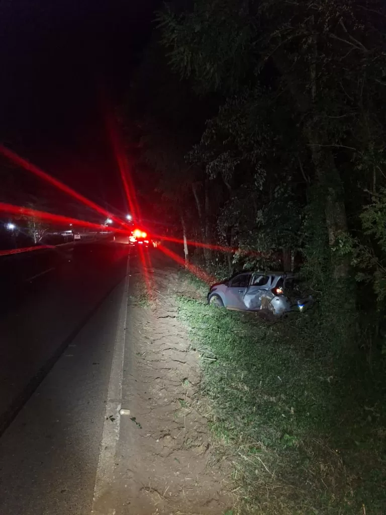Segundo o boletim da Polícia Militar Rodoviária, o condutor de um VW Nivus tentou uma ultrapassagem no km 104,6, perdeu o controle e colidiu na traseira de um Fiat Mobi. O impacto jogou o carro menor para fora da pista. Após o acidente, o motorista do Nivus não sinalizou o local e fugiu a pé, abandonando seu veículo na via.