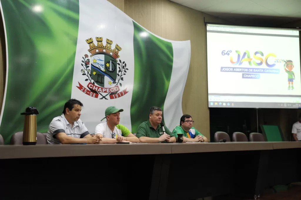 A Prefeitura de Chapecó realizou na sexta-feira (14) uma reunião técnica com coordenadores das modalidades dos Jogos Abertos de Santa Catarina (JASC). O município preparou 31 locais de competição, entre reformados e construídos especialmente para o evento que ocorre de 18 a 29 de novembro.