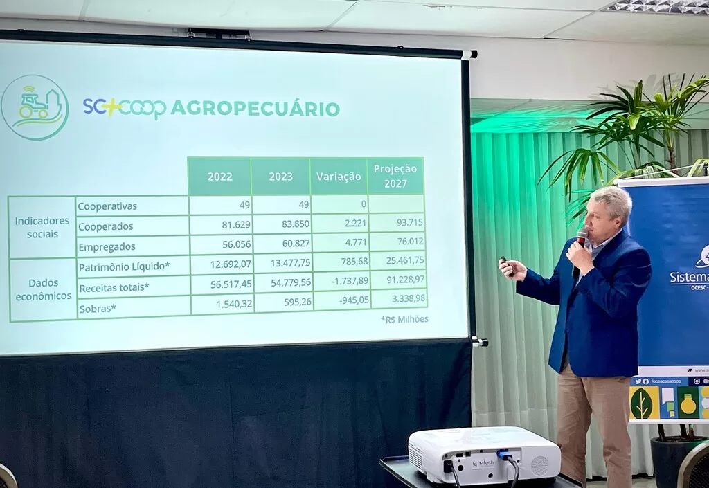 A receita operacional total dessas cooperativas, no entanto, recuou 3% e totalizou R$ 54,7 bilhões. Segundo o presidente da Ocesc, a queda de preço no mercado mundial e o baixo desempenho no mercado interno explicam o revés nas receitas. Suzin acredita que a recuperação ocorrerá em 2024, projetando um crescimento de 15% no faturamento do ramo agropecuário, alcançando R$ 62,9 bilhões. “Isso se o governo federal for inteligente e continuar apoiando o setor”, pontuou o líder cooperativista.